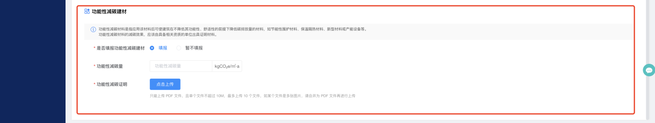 若申报低碳建材,请将碳足迹报告的信息准确填入。